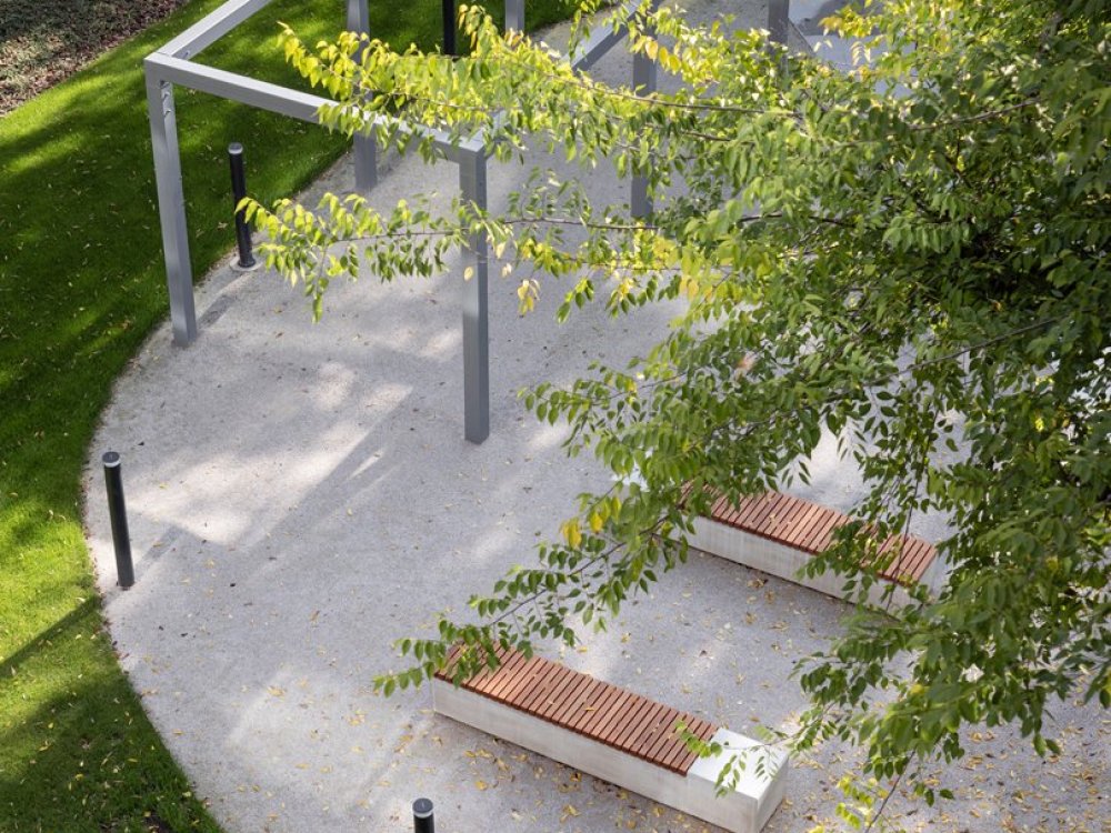 Základnú urbanistickú myšlienku novej štvrte tvorí vnútroblok s veľkorysým parkom. Prirodzene za¬padá do mestského prostredia Račianskej ulice, ktorú obohatil o novú mestskú vybavenosť v partri a vyhľadávanom verejnom priestore. Rušná ulica s rozšíreným chodníkom a cyklotrasou je prepojená s izolovaným vnútroblokom pasážami. Charakteristickým prvkom vnútrobloku je terénne zvlnenie, ktoré okrem zintenzívnenia zelene umožňuje výsadbu stromov na podzemnej garáži.