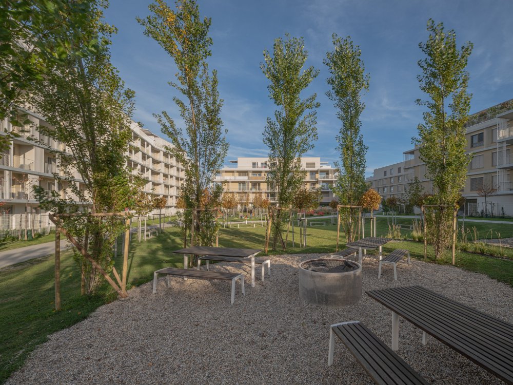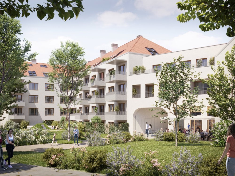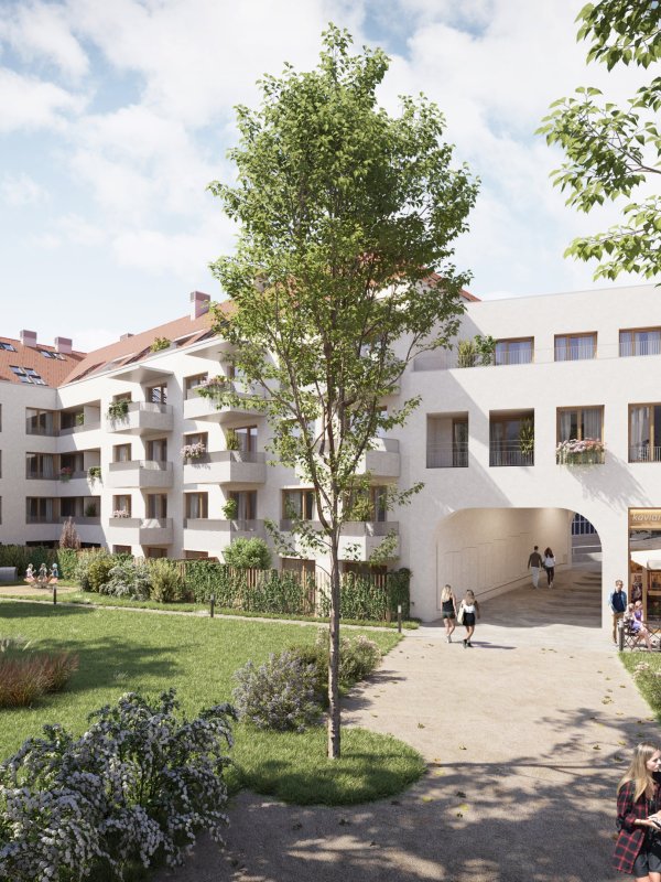 Základnú urbanistickú myšlienku novej štvrte tvorí vnútroblok s veľkorysým parkom. Prirodzene za¬padá do mestského prostredia Račianskej ulice, ktorú obohatil o novú mestskú vybavenosť v partri a vyhľadávanom verejnom priestore. Rušná ulica s rozšíreným chodníkom a cyklotrasou je prepojená s izolovaným vnútroblokom pasážami. Charakteristickým prvkom vnútrobloku je terénne zvlnenie, ktoré okrem zintenzívnenia zelene umožňuje výsadbu stromov na podzemnej garáži.